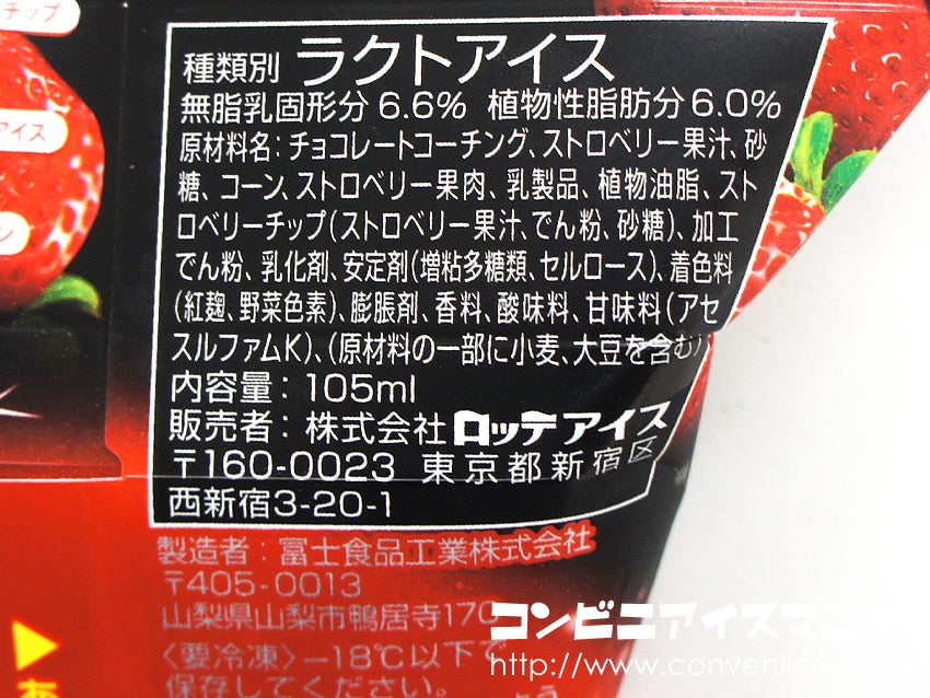 内側のストロベリーアイスは、ラクトアイス規格。いちごの粒々入り。