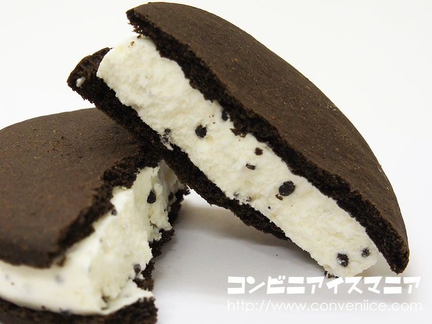 アイスはクリームチーズ風味。クリームチーズとミルクのコクがバランスよく味わえるマイルドなテイスト。ただ、クリームチーズの味自体は濃厚なんですが、ややココアの風味とチョコチップのインパクトにおされ、存在感が薄まっている印象を受けました。クリームチーズの風味はプレーンの方が引き立つのかもしれませんね!・・・とは言っても、これは単なる商品名と味に対してのギャップの話。おいしいものはおいしい!ココアとクリームチーズ、ふたつの味が楽しめる贅沢な味わいのサンドアイスです。