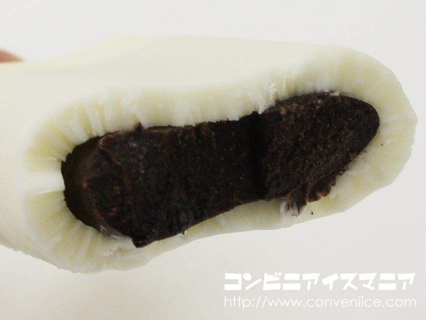 縦に切ってみると、この通り。アイスバーの2/3あたりくらいまでクッキーチョコが入っています。