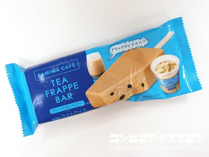 ファミリーマート(FAMIMA CAFE)の人気商品『ティーフラッペ』を再現した”ブラックタピオカ入り”のアイスバー。食べる前からテンションダダ上がりするヤツですこれ。