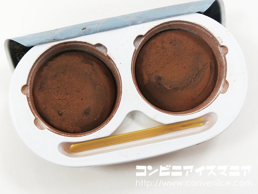 蓋をめくると濃厚生チョコが登場!フォークはゴールドカラーです。