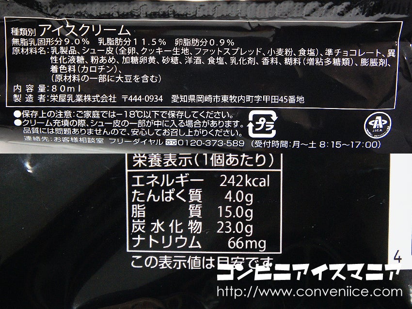 内容量は80ml。シューアイスとしては平均的な大きさです。もう、かぶりつきたい!