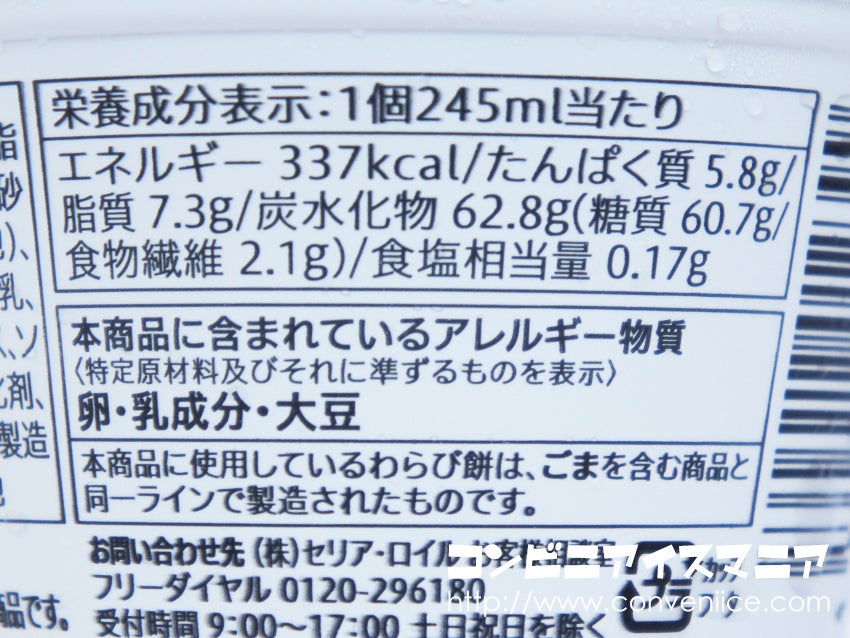 7Pの大容量カップ氷シリーズとしては、昨年(2017年)秋に発売された「宇治抹茶氷 わらび餅・あんこ添え」に続く最新作。前作がおいしかったので今回も期待に胸がはずみます。