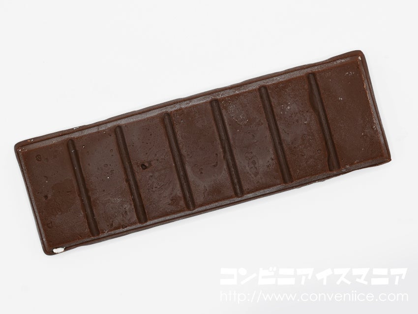 外側のチョコレートはパキパキの食感!・・・ですが、口の中に入れた瞬間なめらかにすーっと溶けるマイルドな味わいのチョコレート。板チョコアイスは製品の45%がチョコレート。この食べごたえのある板チョコ部分こそが一番の魅力。