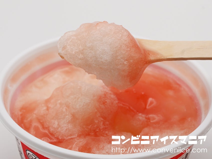 容器はプラスチック製の蓋 にプラスチック製カップという仕様。内容量は145ml。かき氷カップとしてはやや小ぶりなサイズ。以前の「ネクター 桃のかき氷」(185ml)に比べても随分コンパクトなサイズになっています。