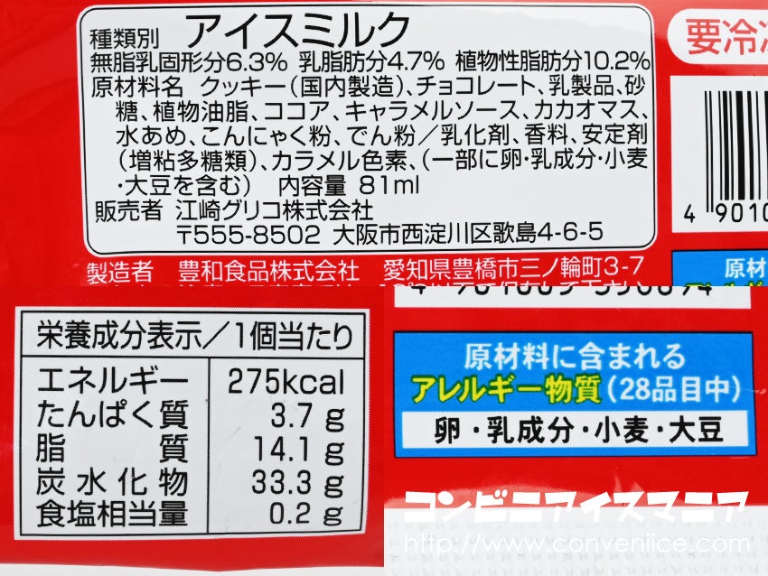 製造はクッキー系アイスの製造を得意とする愛知県の豊和食品。