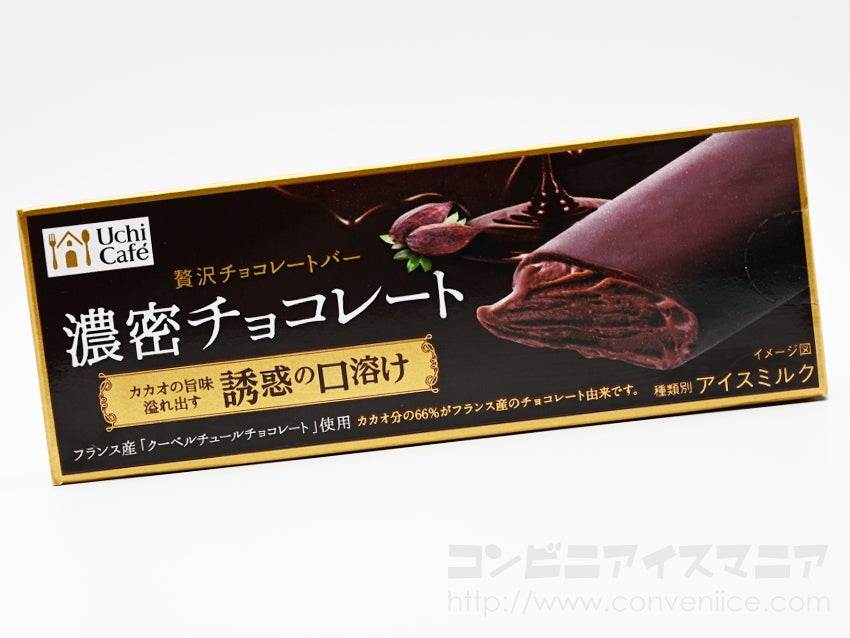 パリッとしたチョコレートコーティング。内側のアイスはねっとり食感!フランス産のクーベルチュールチョコレートを使用した本格派のチョコレートアイスバー。くちどけも抜群。まさに濃密チョコレート。