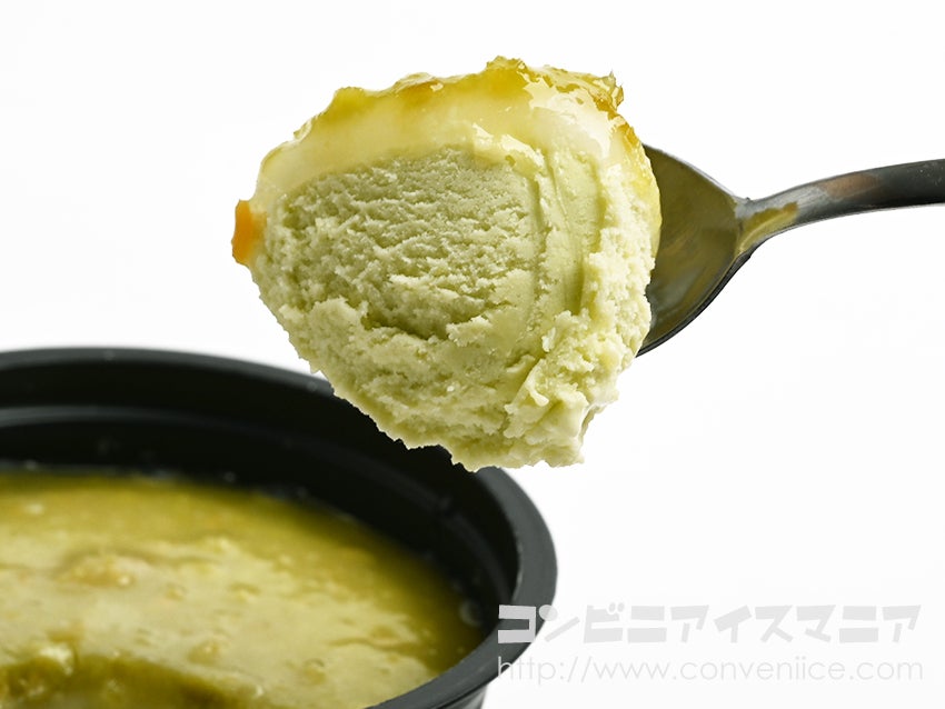 アイス部は、“ずんだミルク風味”アイス。種類別はこだわりのアイスクリーム規格。ずんだの風味を効かせつつミルクの風味を加えたやさしい味。トッピング部のずんだあんの存在感が強めなのでアイスにミルクを組み合わせることで全体の味のバランスを調整しているのでしょう。
