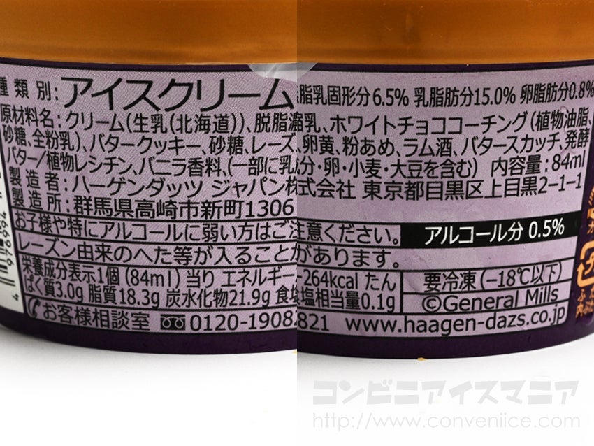 存在感のあるラムレーズンの粒とコクのあるバターアイスクリーム、そしてサクサクのバタークッキーが織り成すおいしさはハーゲンダッツならではの上質な味!洋菓子とアイスクリームが完全に融合しています。なんて贅沢なんだ!