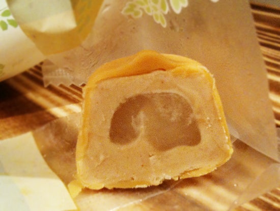 外側はきなこチョコのコーティング!中は上部に餅ソース。下部にはきなこアイス!これがきな粉もちを食べてるような感じで美味しいです。っていうか、もちソースだったのか・・・。