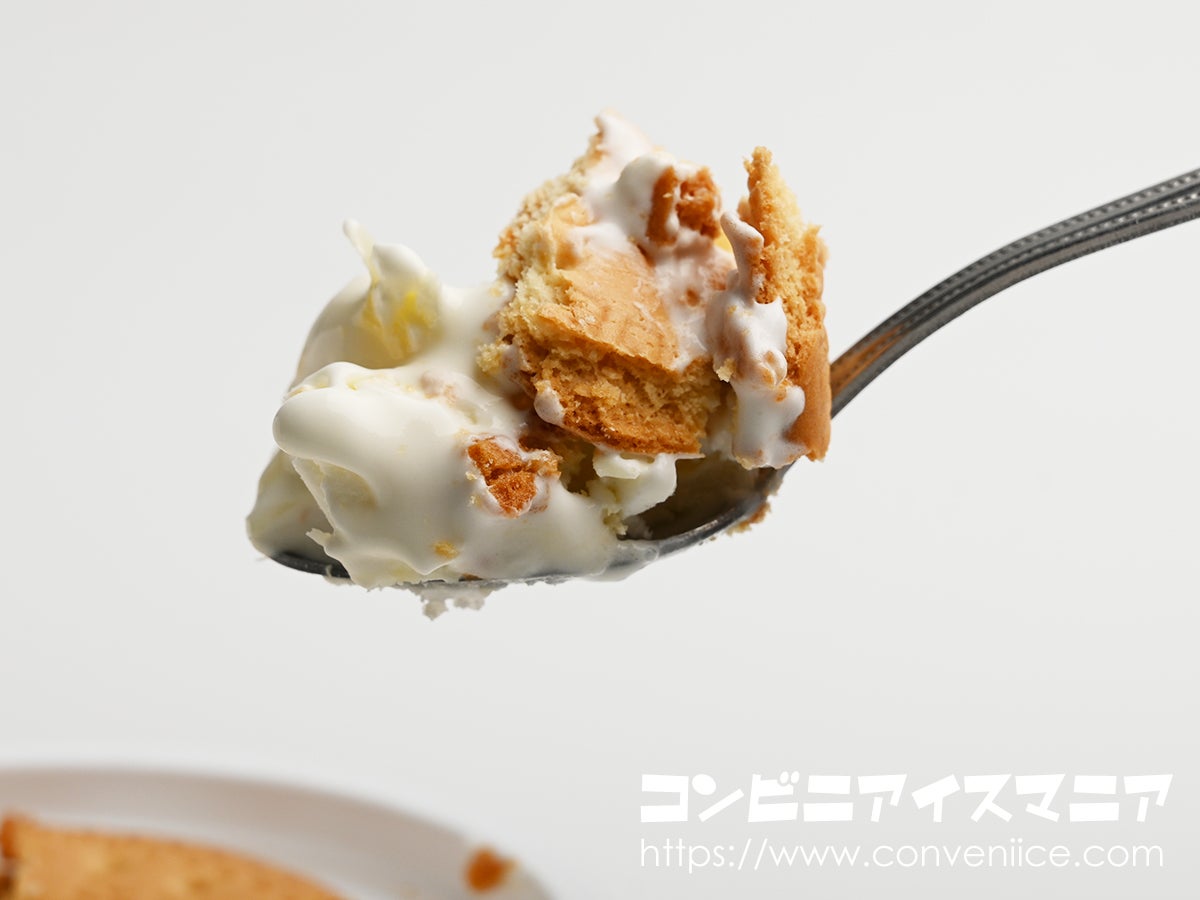 MARIEビスケットは、アイスの水分を吸収し、部分的にややしっとりとした食感になっています。