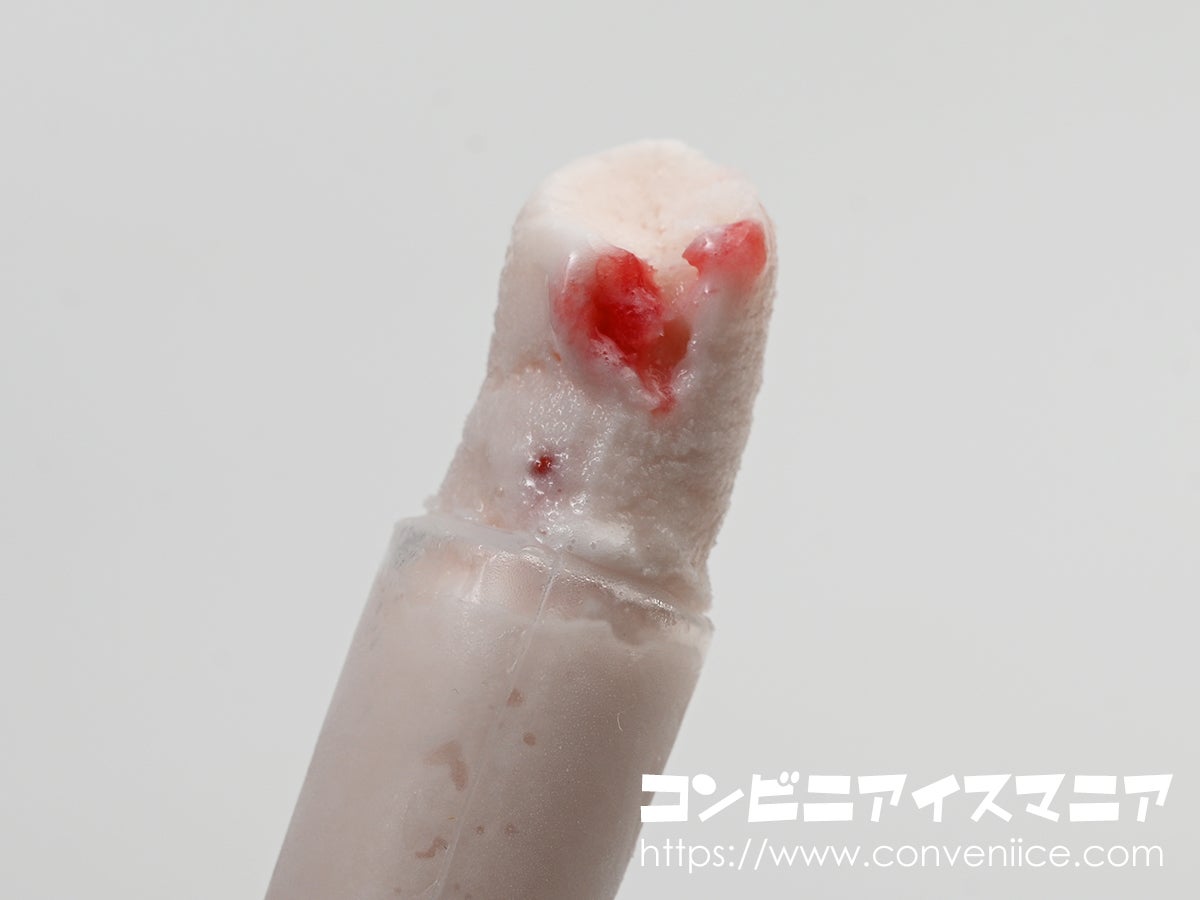 種類別はアイスミルクで、通常のパピコより乳成分を増量した濃密仕立て。チューブから押し出す際の粘度も通常品より高く設定されています。口に含むと、コクのあるチーズの風味と甘酸っぱい苺果肉の食感が広がり、チーズケーキを思わせる味わいを楽しめます。