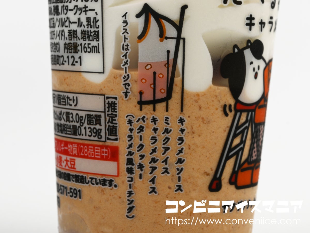 内容量は165ml、カロリーは308kcal。価格は税込270円(税込)。2020年の発売時には税込208円でしたが、近年は原材料費やエネルギーコストの上昇もあり、アイス業界全体で価格が高騰しています。とはいえ、北海道産ミルクと贅沢なキャラメルソースのクオリティを考えると、しっかりと価値が感じられる価格設定です。