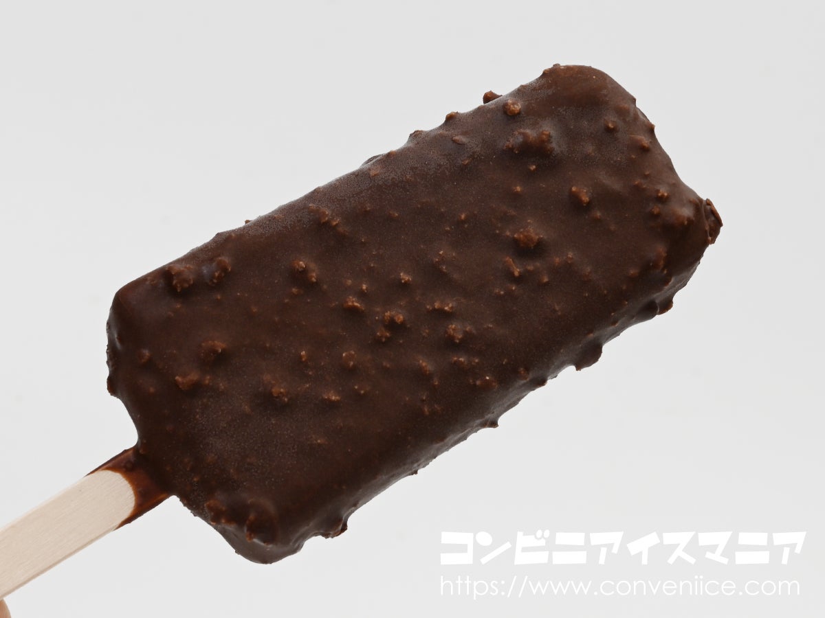 一口かじると、外側のチョココーティングがパリッと音を立てて割れ、クランチがザクザクとした存在感を発揮。その後すぐに、ふわっとしたチョコアイスの軽やかな口どけともっちりとしたマシュマロのようなやさしい食感が追いかけてきます。