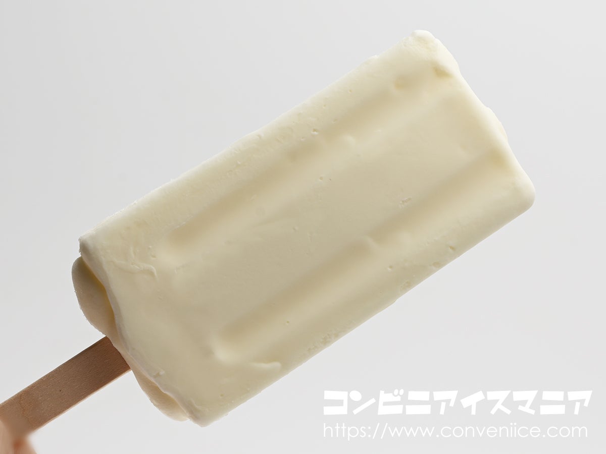 袋から取り出すと、シンプルながらも純白の美しいアイスバーが姿を現します。内容量は85mlで、平均的なサイズ。ほどよい厚みと長方形の形状です。