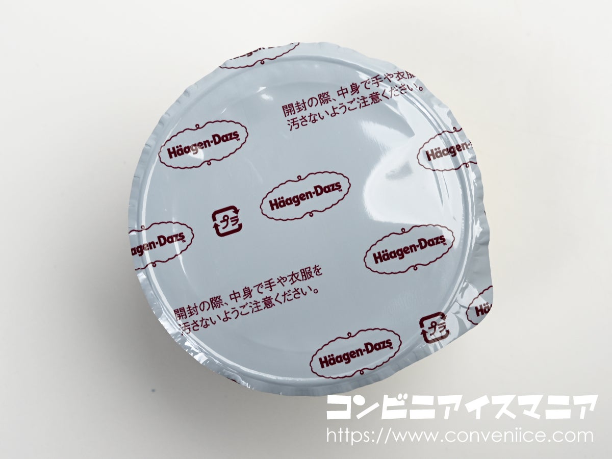 プラスチック製の蓋を開けると、ハーゲンダッツロゴ入りの遮光フィルム(タンパーエビデンス)が。悪魔のささやきの透明フィルムとは異なり、中身が見えない仕様になっており、開けてみてのお楽しみ感が高まります。