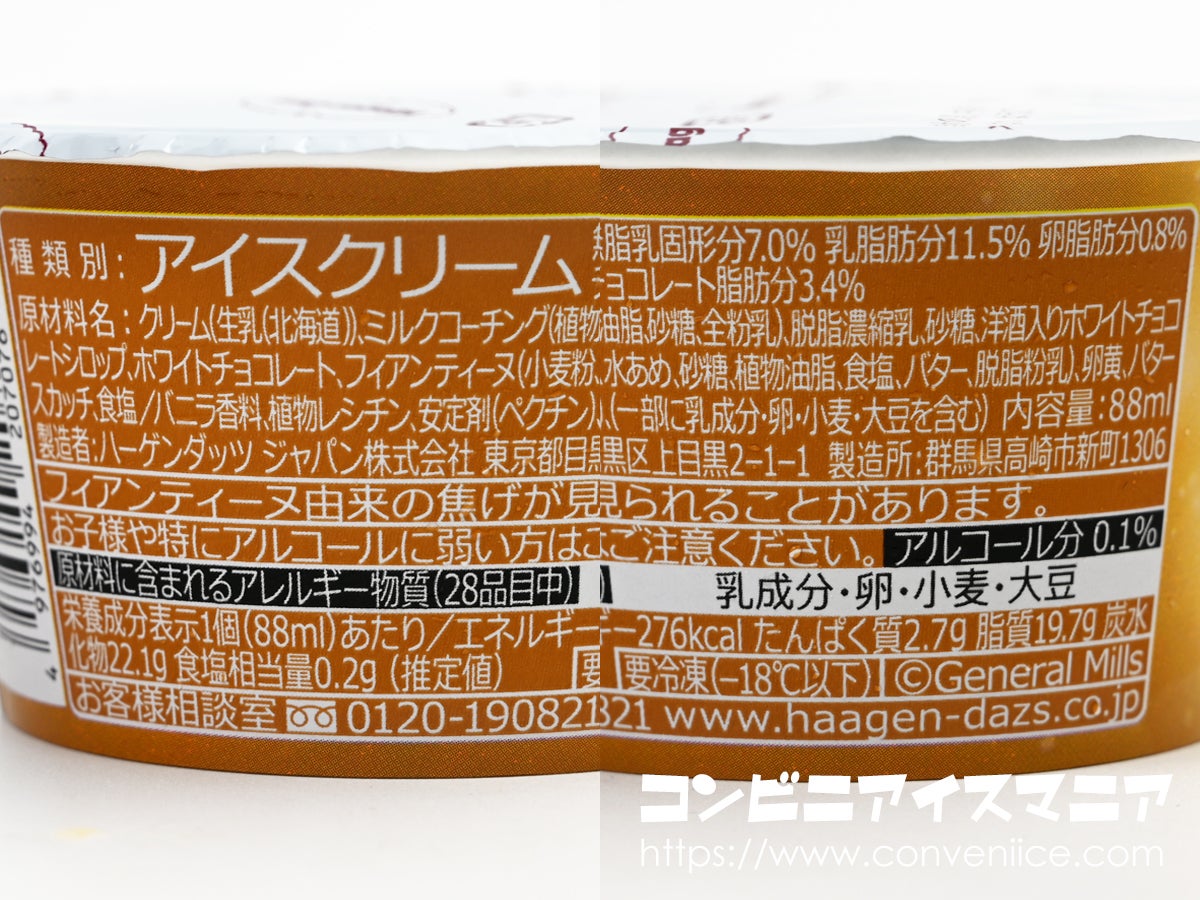 内容量は88ml。悪魔のささやきが86mlだったのに対してよりわずかに容量が異なります。シンプルなアイスクリームと違い使用する原材料などによって内容量も変わってくるのでしょう。