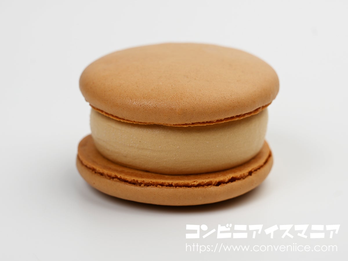 キャラメル味のマカロン生地は外側はサクッとしていて、内側はもちっとした湿り気があって、アイスと一体化するような口どけ。