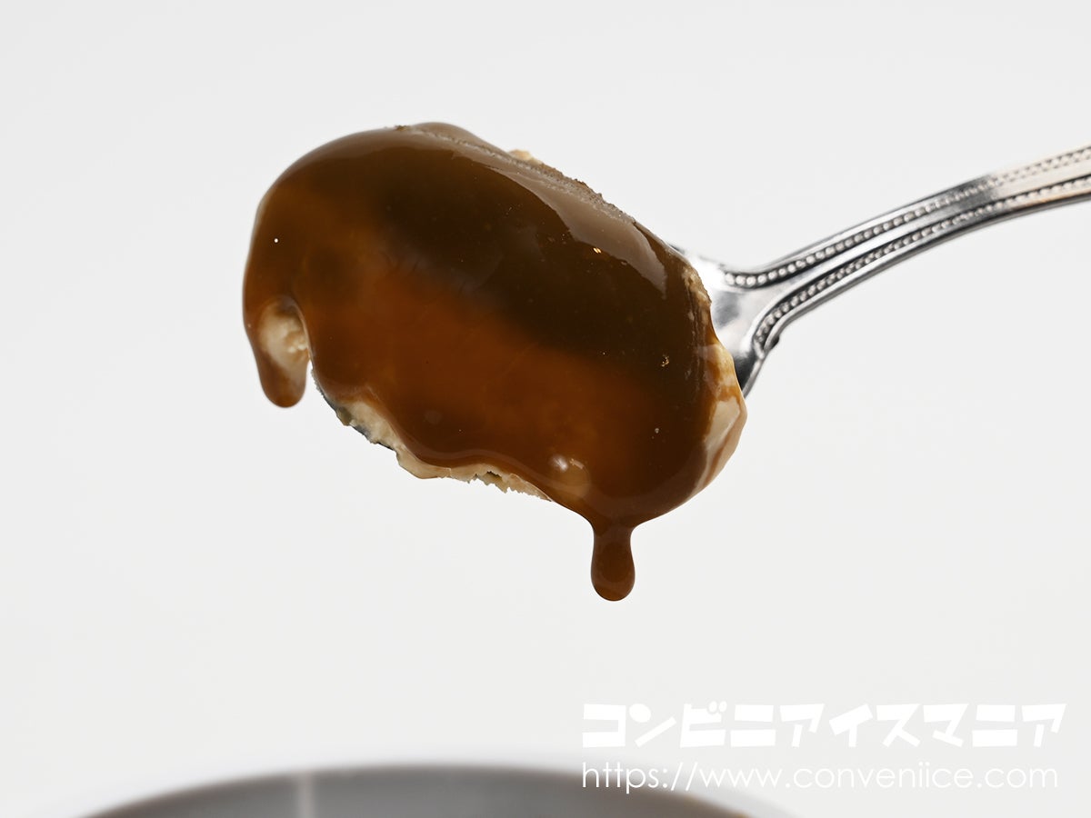 ひと口食べると、まず天面のミルクティーソースがとろり。和紅茶の華やかな香りがふわっと広がり、繊細でまろやかな和紅茶の風味。渋みがほとんどなく、ほのかな甘みを感じます。これが「初摘み一番茶」の実力か…。続いて現れるのは、和紅茶アイスクリーム。ミルクティーソースよりも紅茶の風味がしっかりと感じられ、でも決して強すぎない。ハーゲンダッツならではの濃厚なミルク感と相まって、上品なロイヤルミルクティーのような味わいです。
