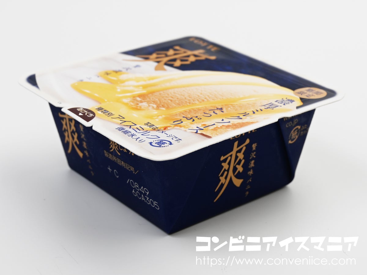 本商品「贅沢濃味バニラ」は、そんな爽ブランドをアイスミルク規格へ昇華させています。発酵バターの採用、ミルフィーユ状充填技術と、ロッテの技術力を惜しみなく投入した集大成といえるでしょう!