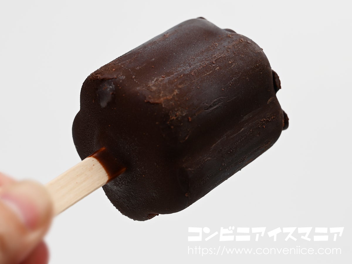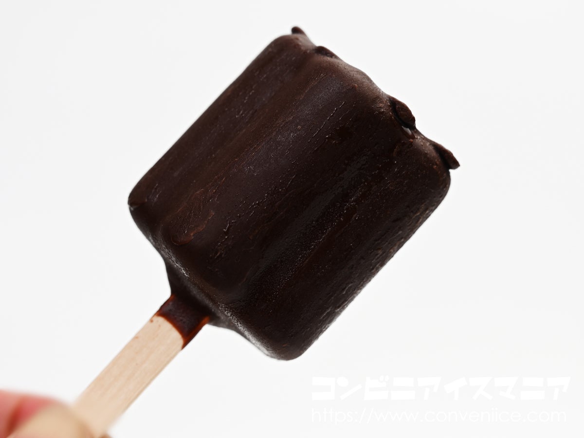 続いてチョコレートアイスの濃厚な風味が広がります。このチョコレートアイス、甘さ控えめでビターな仕上がり。カカオの深みがしっかりと感じられ、大人の味わいです。