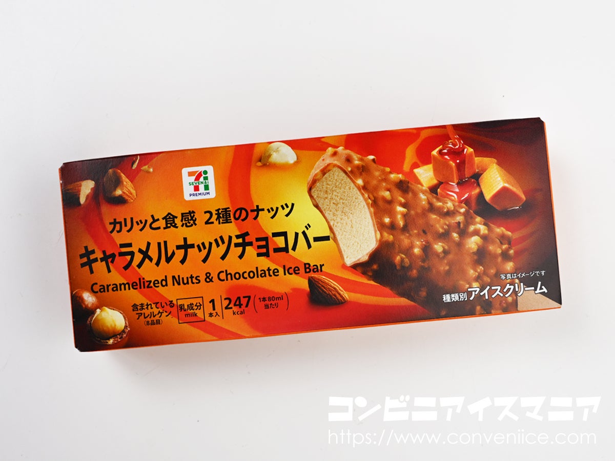 セブンプレミアム『キャラメルナッツチョコバー』は、全国のセブン-イレブンで発売された新作アイスバーです。