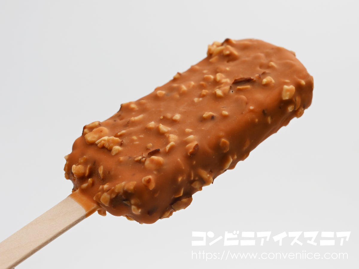2種類のナッツ(アーモンド&マカダミア)×キャラメルチョココーティング×濃厚キャラメルアイスという贅沢な組み合わせ。カリっとした食感と、キャラメルの芳醇な甘さが最後まで楽しめる設計がお見事。税込278円という価格は、アイスバーとしては上位の価格帯ですが、乳脂肪分8.0%のアイスクリーム規格と2種のナッツを使用した贅沢仕様を考えれば納得。原材料費や包材、エネルギーコストの上昇がアイス業界全体に影響している昨今、この品質を考えれば妥当な価格設定といえるでしょう。