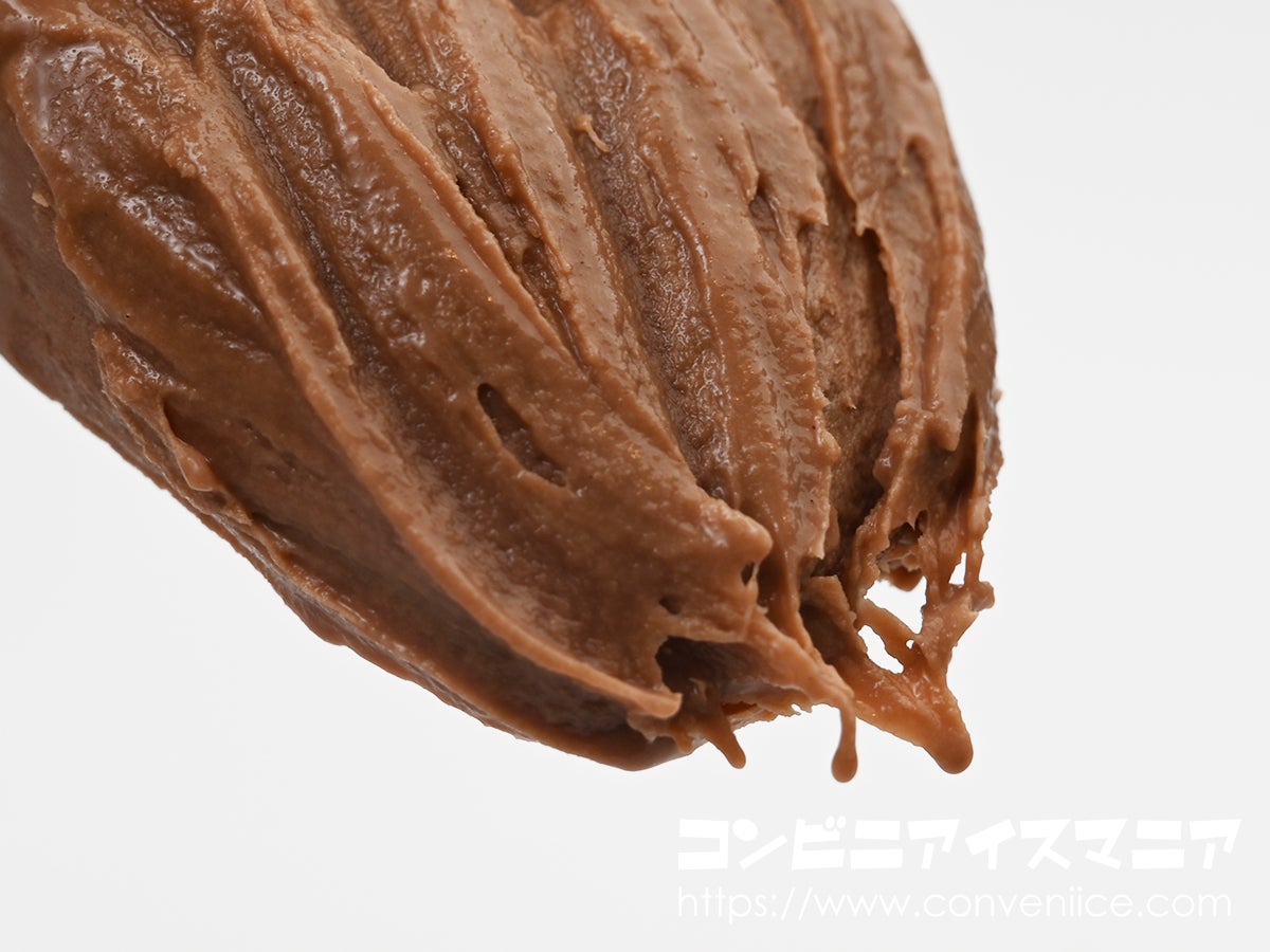 通常のチョコアイスとは明らかに異なる、ねっとりとした生チョコそのものの佇まい。アイスでありながら、まるでチョコレートの塊です。