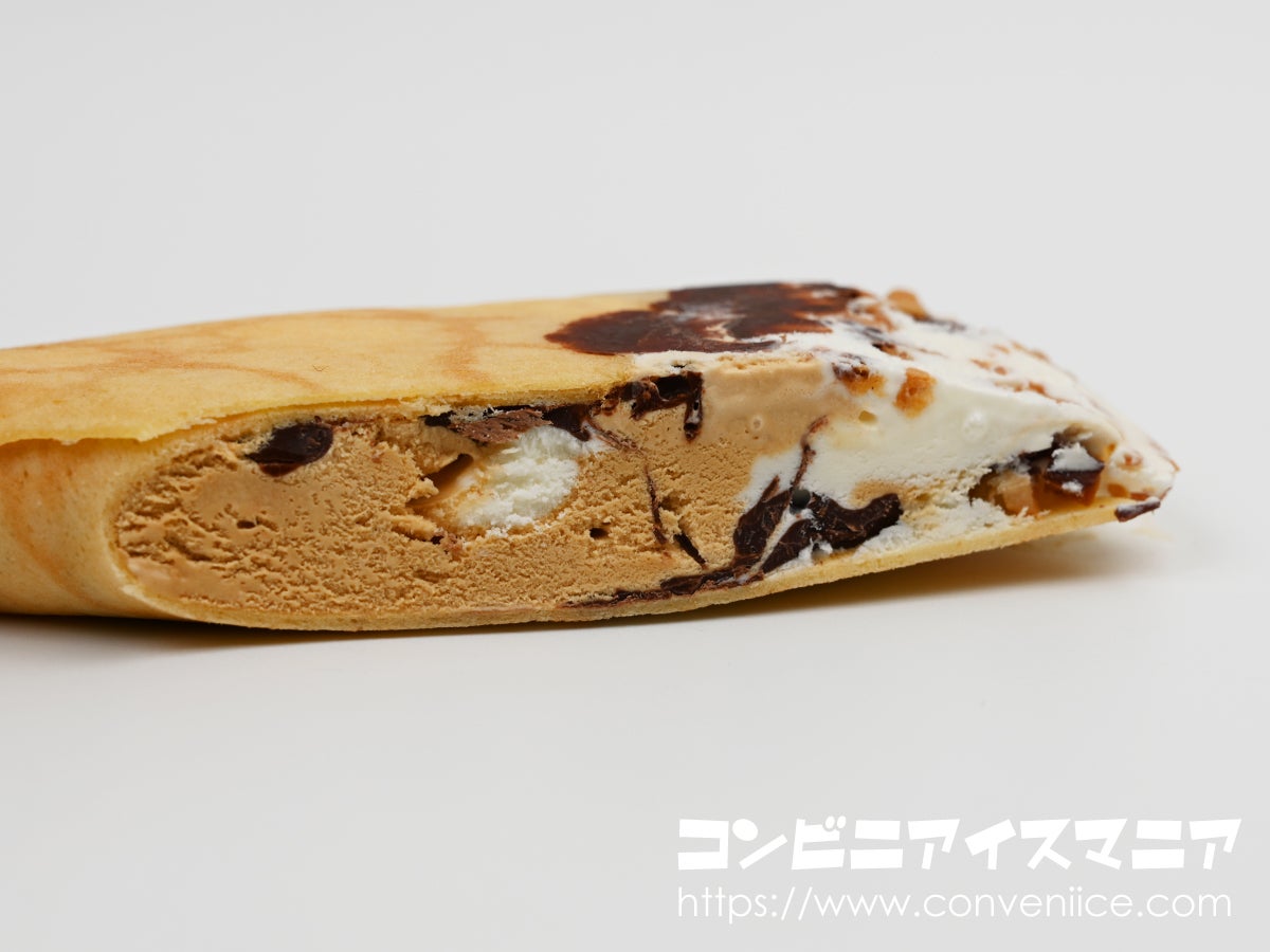 冷凍庫から出して少し時間を置いてから食べると、クレープ生地とアイスがよく馴染んで、程よいやわらかさが楽しめますよ。
