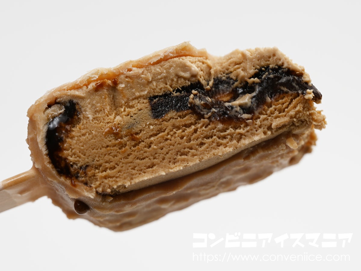 食べ進めると、アイスクリームの中に仕込まれた紅茶ソースが登場。アッサム茶葉を使用した、紅茶の風味が濃厚に凝縮されたソースです。開発担当者のこだわりポイントによると、「先端涙型充填」という構造を採用しているとのこと。これにより、バーの先端にソースだまりができ、一口目から強い紅茶の味わいを楽しめるようになっています。食べ進めるごとにソースとアイスクリームのバランスが変化し、さまざまな紅茶の表情を見せてくれる。飽きのこない工夫が随所に施されているのがハーゲンダッツらしい。