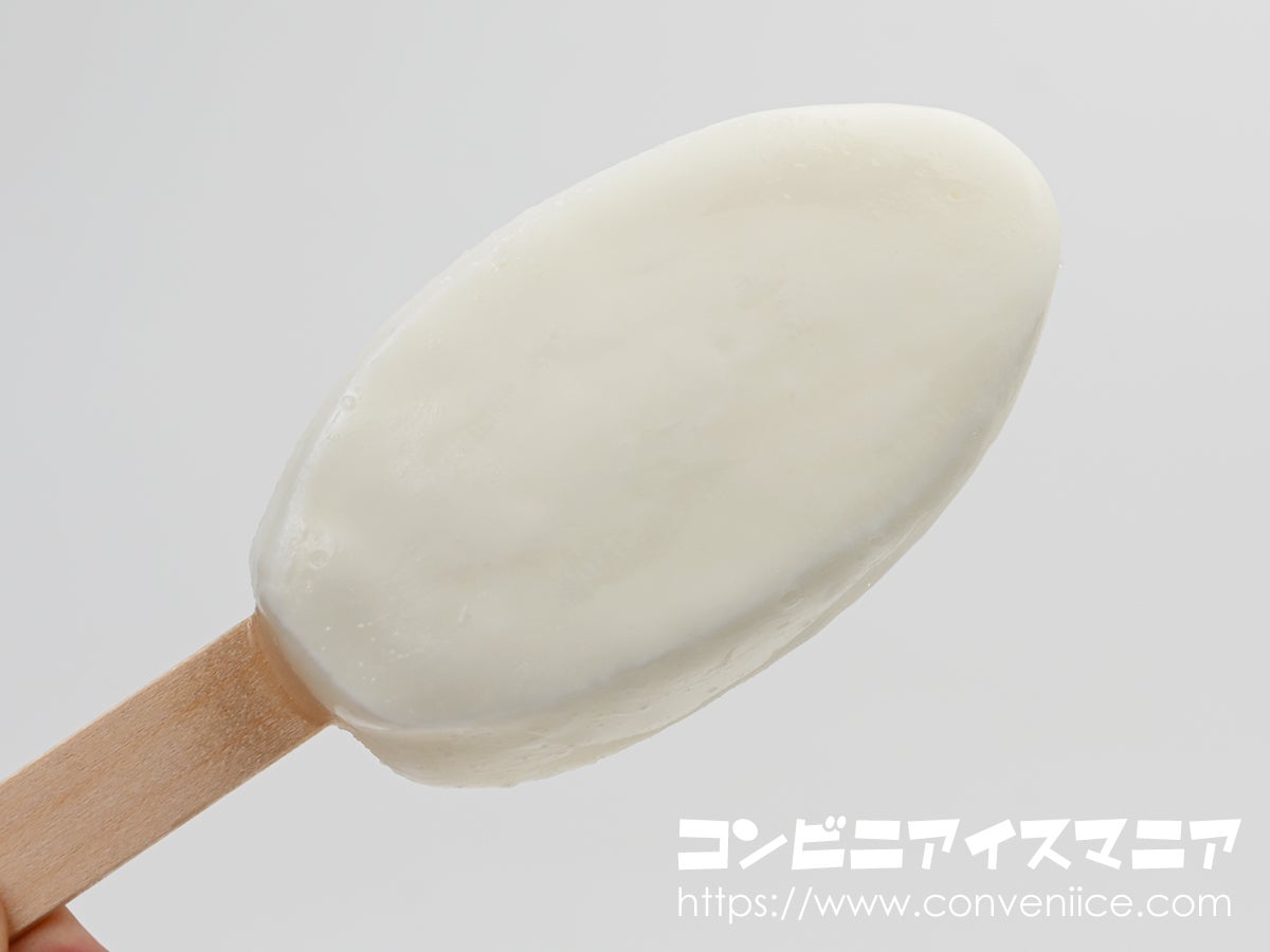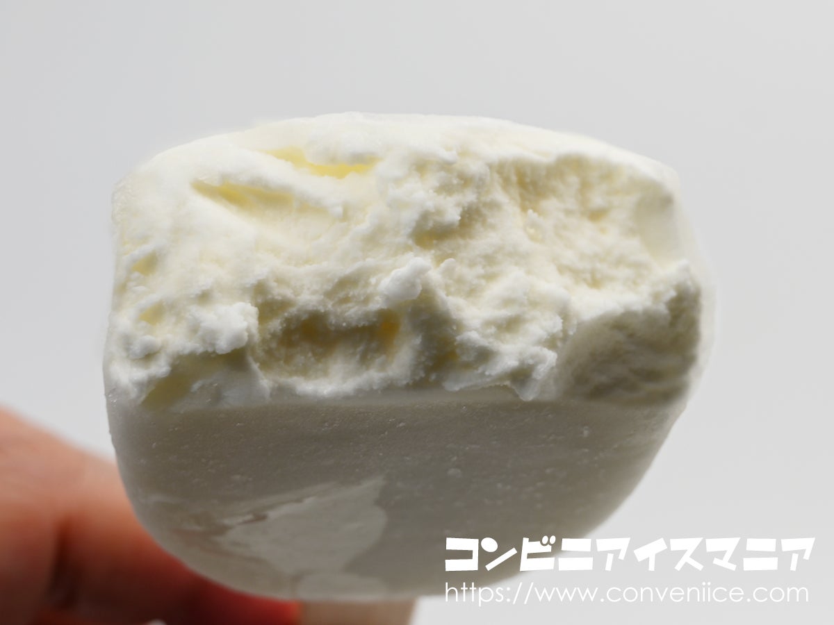 断面を見ると、中心部まで均一な白さで、きめ細かなヨーグルトアイスがぎっしり詰まっている様子がわかります。