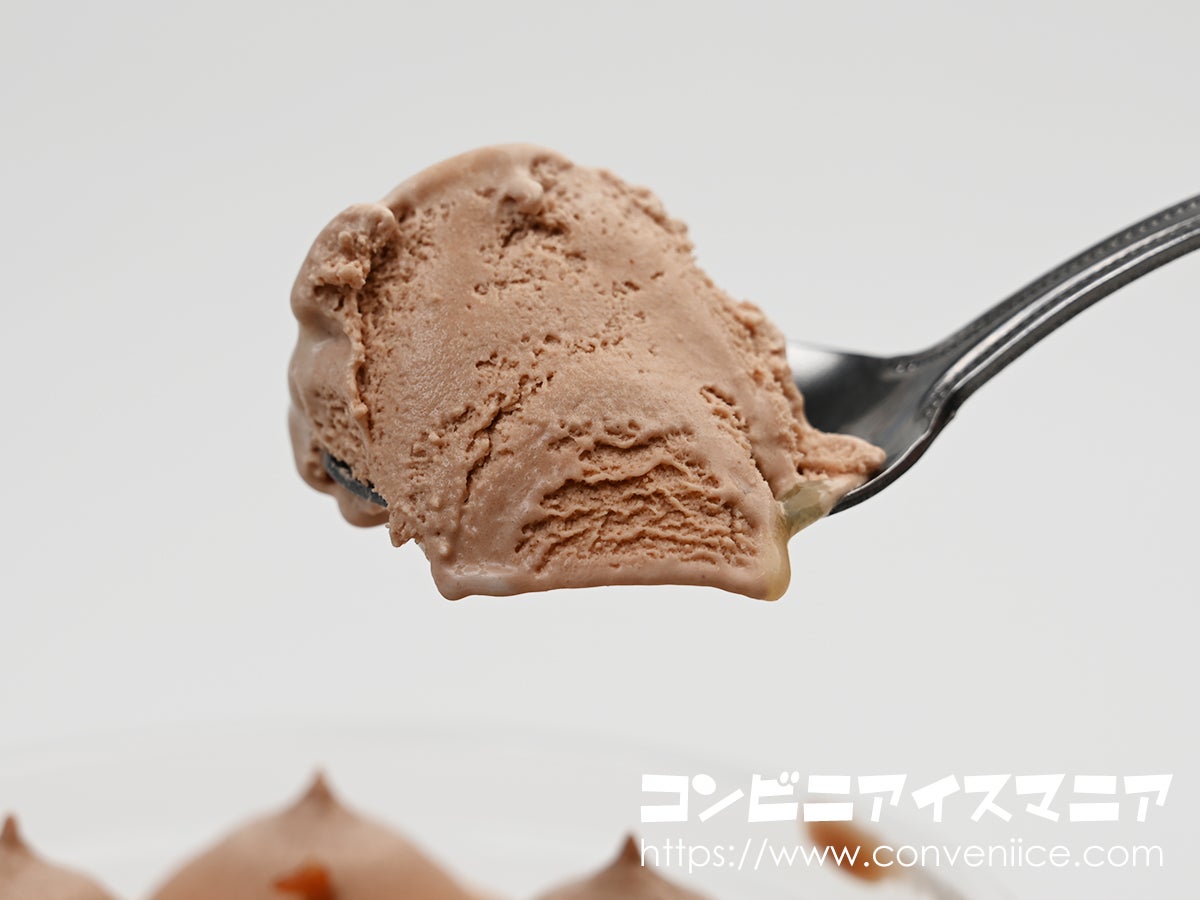 製造を担当したのは、われらが赤城乳業。ガリガリ君でおなじみのこのメーカーですが、近年はハイクオリティなプレミアムアイスの製造でも高い評価を得ています。CHOCOLATE BANKとのコラボシリーズは、2022年の「リッチチョコミント」と「ワッフルコーン チョコレート&アーモンド」から一貫して赤城乳業が製造を手掛けており、チョコレート専門店の味わいを冷凍アイスとして見事に再現する技術力は健在です。