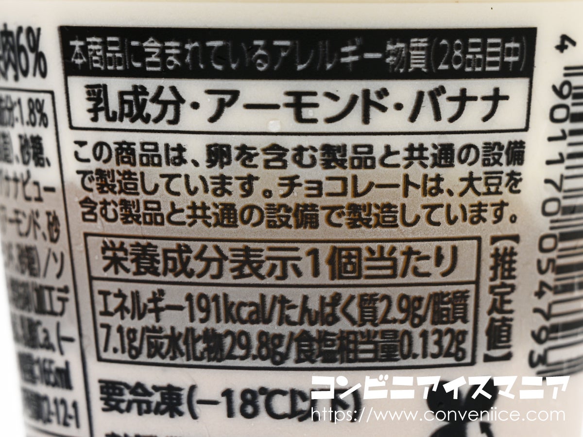 下層に現れるバナナアイスは、熟度管理された完熟バナナのピューレを配合。バナナ果汁・果肉6%という数字以上に、しっかりとしたバナナの風味が感じられます。完熟バナナならではの濃厚な甘みとねっとりとした舌触りが特徴的で、チョコレートアイスとの相性は言うまでもなく最高!王道のチョコバナナの組み合わせを、素材にこだわり抜くことで極限まで高めた味わいです。