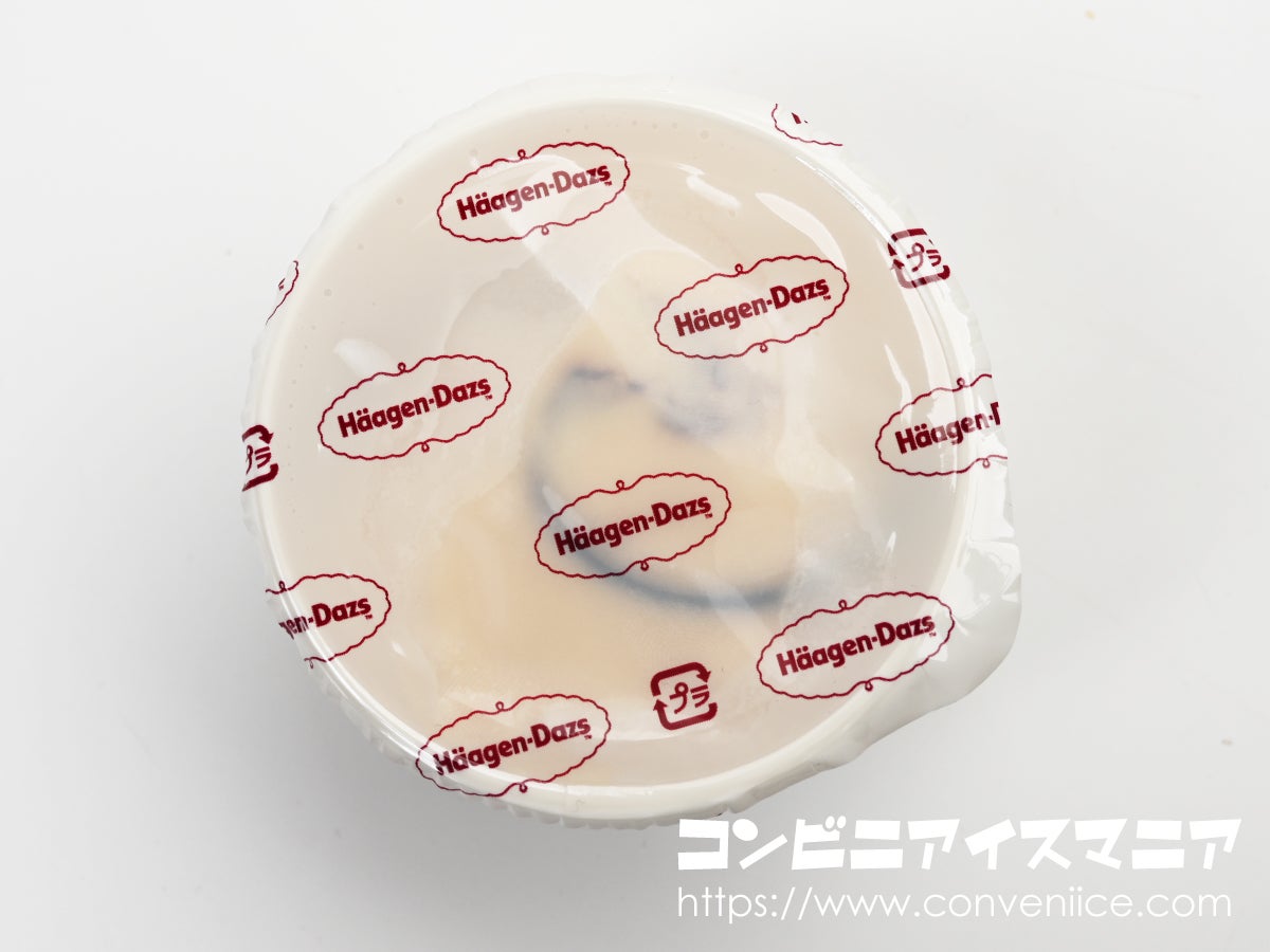 蓋を開けると、ハーゲンダッツ(Häagen-Dazs)のブランドロゴ入り内蓋フィルムが登場。お馴染みのタンパーエビデンスです。