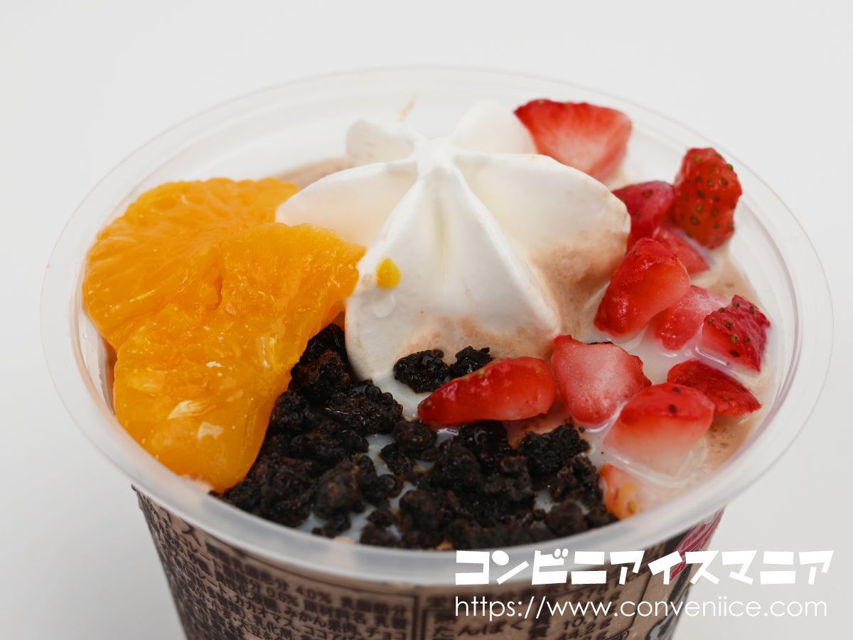 みかん、いちご、焼きチョコ。華やかなトッピングが彩る”チョコしろくま”