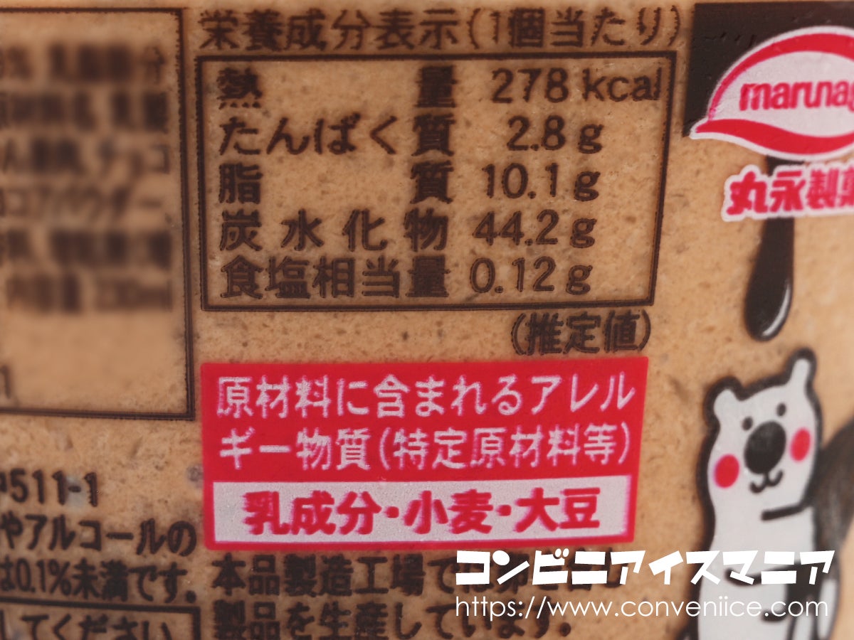 全体の色調は、フタのチョコブラウン × ホワイトのコントラストがきいていて、従来のしろくまシリーズの「白×カラフル」とは違った印象。それでいて「九州名物」の赤いロゴや、丸永製菓のmarunagaマークはしっかり健在です。