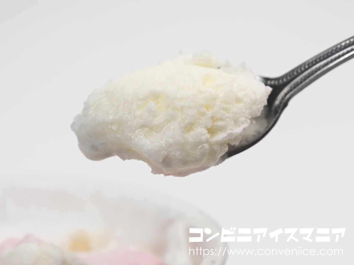 ひと口食べると、まずホワイトチョコ氷のやさしい甘さが口いっぱいに広がります。ベースの練乳氷は白くまシリーズならではのなめらかな口どけで、シャリシャリすぎず、しっとりソフトな食感。北海道産の加糖練乳を使用しており、濃厚なミルクのコクがふわりと香ります。
