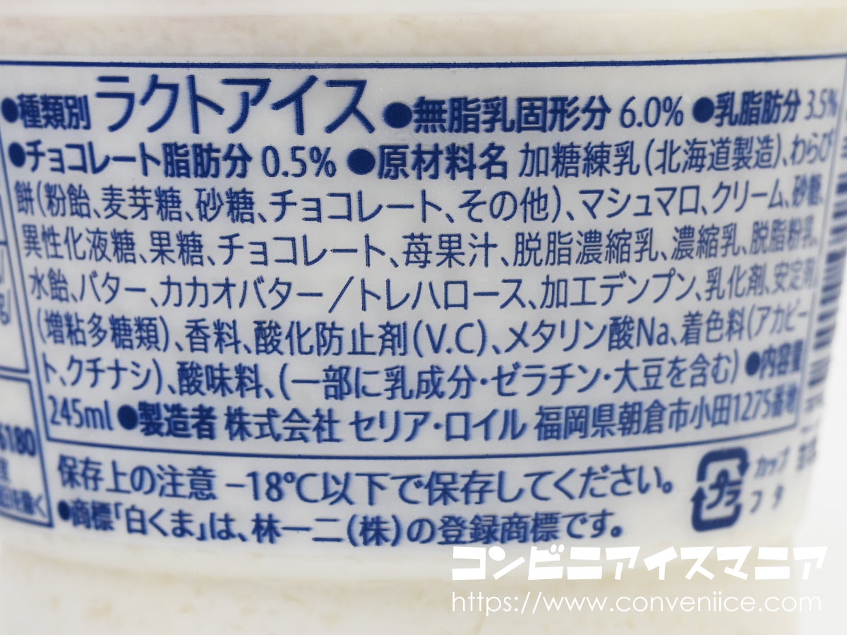 そんなセリア・ロイルですが、2025年12月に大きなニュースが飛び込みました。日清食品ホールディングスが同社の株式68.01%を取得し、2026年2月27日付で子会社化すると発表。日清食品HDにとってアイスクリーム事業は初の参入です。即席麺の巨人が持つブランド力と全国営業網が、セリア・ロイルの開発力・製造力と掛け合わされることで、今後どんな商品が生まれるのか――アイスファンとしては目が離せない展開です。ちなみに「白くま」の商標は大阪の林一二株式会社が登録しており、パッケージにもその旨が記載されています。鹿児島発祥なのに大阪のメーカーが商標を持っているというのは、白くまの豆知識としてぜひ覚えておいてください。