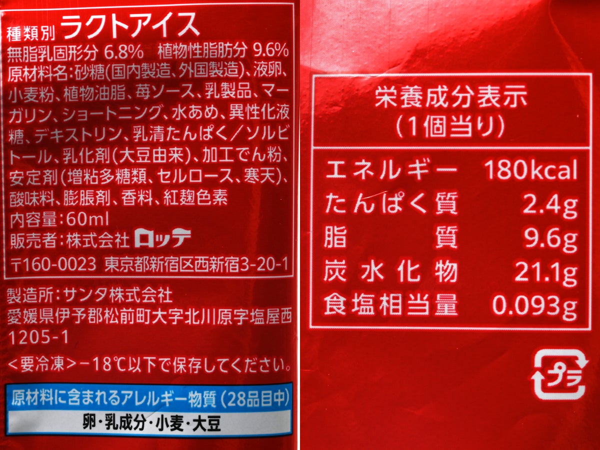 ちなみにSWEETS SQUAREの苺のアイスケーキは種類別がアイスクリームだったのに対し、今回はラクトアイス規格。とはいえホイップアイスの軽やかさがショートケーキのクリーム感と合っていて、これはこれで正解だと感じます。
