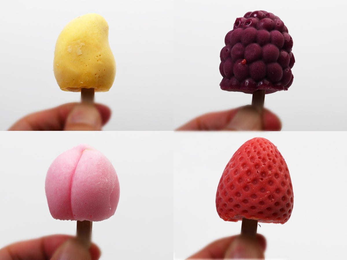 3Dフルーツポップスは、前作3Dフルーツアイスの魅力だった立体造形の楽しさをそのまま残しつつ、ひとくちサイズ×4種アソートという新しい楽しみ方を提案しています。