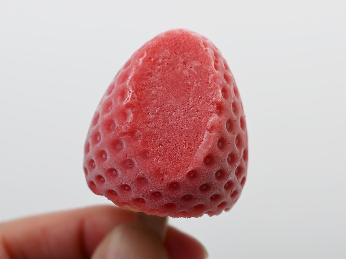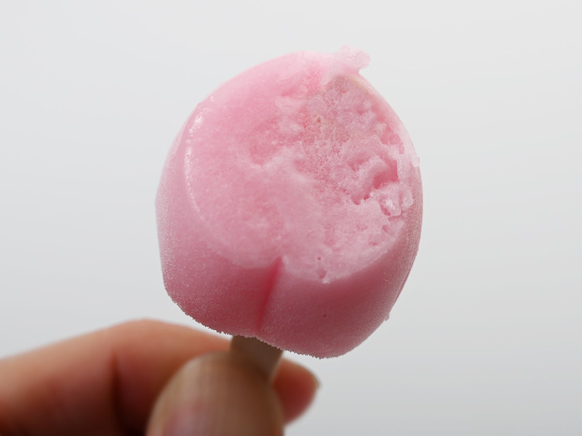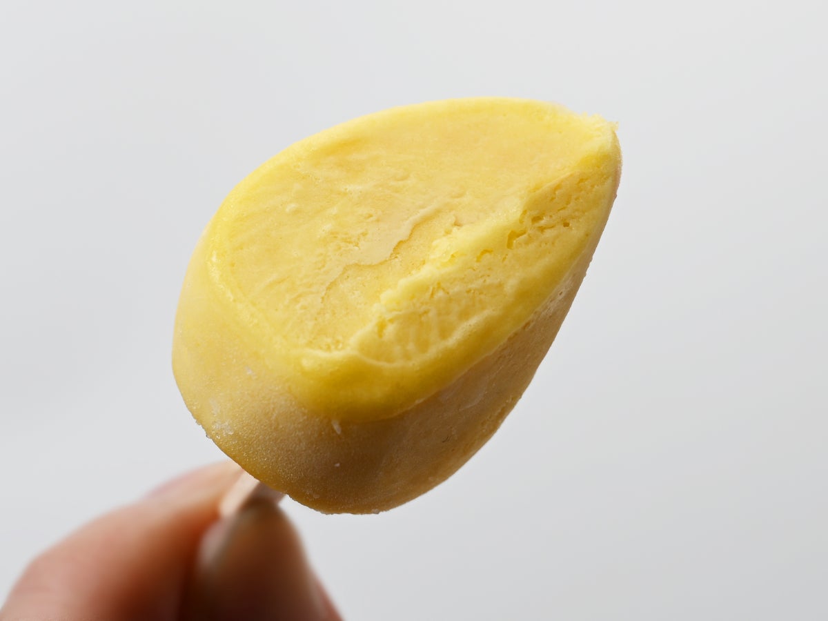 ももは真ん中に割れ目の溝が入っていて、マンゴーはぽってりした洋梨のようなフォルム。前作と決定的に違うのは、外側のホワイトチョココーティングがないこと。今回は純粋なフルーツ氷菓として仕上げられています。