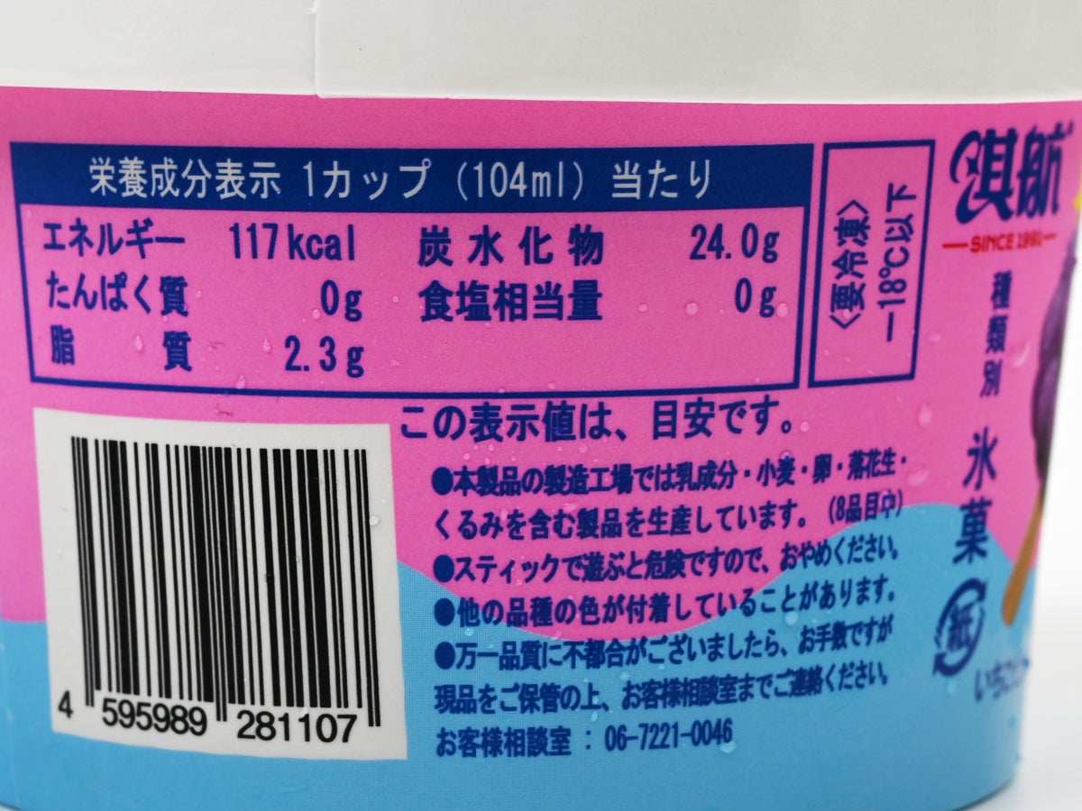種類別は氷菓。輸入者は株式会社Gold Star、所在地は大阪府大阪市生野区。製造は前作と同じく中国の淇航食品有限公司と考えられます。原産国名にも中国と明記されています。