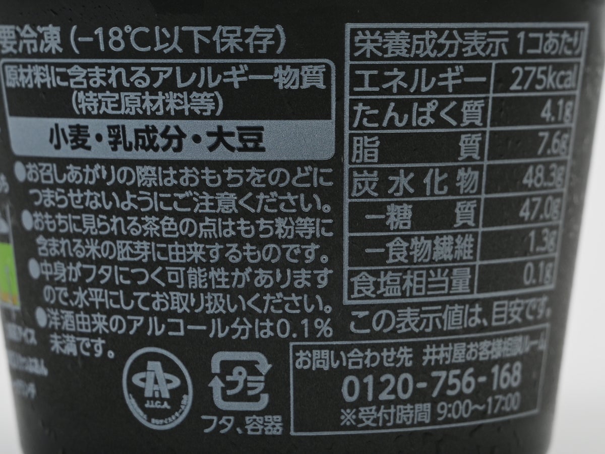 製造を手がけるのは井村屋株式会社、本社は三重県津市。製造所は岐阜県の井村屋岐阜工場(元ポレア)。過去にこちらでも紹介したほうじ茶ティラミスわらびもちや濃香宇治抹茶アイス、やわもちアイスパフェ いちご大福味など、井村屋の和パフェ系・抹茶系の名作はいずれもこの岐阜工場製です。